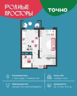 "Родные Просторы" — самодостаточный микрорайон, который реализуется по принципам комплексного развития территории. На территории 41 га возводится один из самых масштабных проектов в Краснодарском крае, который включает: 29 разновысотных домов_x000D_ от 9 до 24 этажей, уютные дворы со спортивными и игровыми площадками, социальные и коммерческие объекты, зеленые массивы и фонтаны. Главная точка притяжения "Родных Просторов" — парк семейного отдыха площадью 9 га, 4,5 км прогулочных аллей, амфитеатр для мероприятий, кинофестивальная площадка. Особая гордость микрорайона — современная школа на 1550 мест и 3 детских сада "Ладушки", "Веснушки" и "Топотушки" на 880 малышей. В центре микрорайона строятся фитнес-клуб "Баланс" с акватермальным комплексом и собственная поликлиника площадью более 5000 кв.м. Уже открыт православный храм Святых Первоверховных апостолов Петра и Павла. "Родные Просторы""— проект для жизни или инвестиций с доходом до 1,5 млн. руб. в год.*