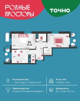 "Родные Просторы" — самодостаточный микрорайон, который реализуется по принципам комплексного развития территории. На территории 41 га возводится один из самых масштабных проектов в Краснодарском крае, который включает: 29 разновысотных домов_x000D_