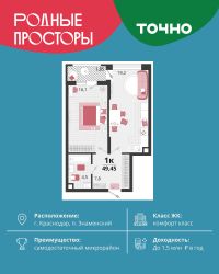 "Родные просторы"- самодостаточный микрорайон, который реализован по принципу комплексного развития территории, где есть вся инфраструктура для комфортной жизни. На территории 41 га 29 домов от 9 до 24 этажей, уютные дворы со спортивными и игровыми площадками, социальные и коммерческие объекты, зеленые массивы и фонтаны. Главная точка притяжения "Родных просторов" - парк семейного отдыха площадью 9 га, 4,5 км прогулочных аллей, амфитеатр для мероприятий, кинофестивальная площадка. Особая гордость микрорайона современная школа на 1550 мест и 3 детских сада "Ладушки", "Веснушки" и "Топотушки" на 880 малышей. В центре микрорайона строятся фитнес-клуб BALANCE с акватермальным комплексом и собственная поликлиника, площадью более 5000 кв.м. Уже открыт православный храм Святых Первоверховных апостолов Петра и Павла.