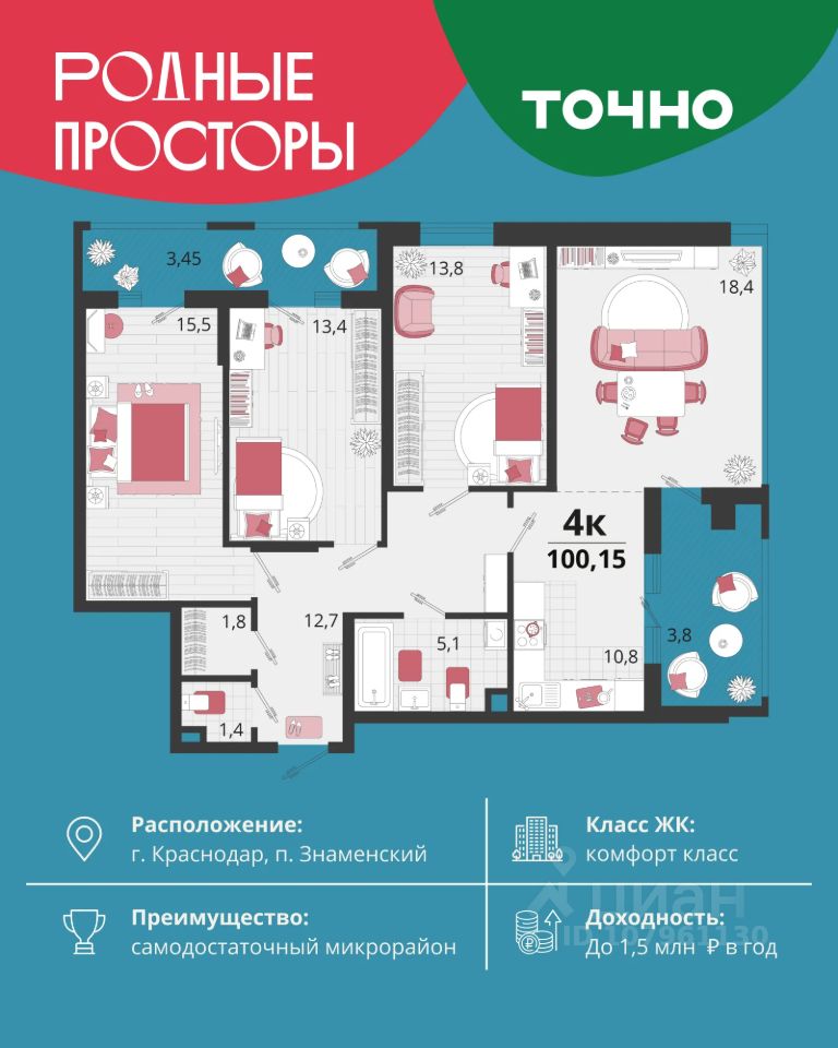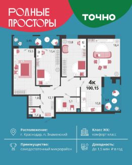 Продаётся 4-комнатная квартира в строящемся доме (Литер 12), срок сдачи: IV-кв. 2025, общей площадью 92.9 кв.м., на 18 этаже. "Родные просторы"- самодостаточный