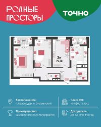 "Родные просторы"- самодостаточный микрорайон, который реализован по принципу комплексного развития территории, где есть вся инфраструктура для комфортной жизни. На территории 41 га 29 домов от 9 до 24 этажей, уютные дворы со спортивными и игровыми площадками, социальные и коммерческие объекты, зеленые массивы и фонтаны. Главная точка притяжения "Родных просторов" - парк семейного отдыха площадью 9 га, 4,5 км прогулочных аллей, амфитеатр для мероприятий, кинофестивальная площадка. Особая гордость микрорайона современная школа на 1550 мест и 3 детских сада "Ладушки", "Веснушки" и "Топотушки" на 880 малышей. В центре микрорайона строятся фитнес-клуб BALANCE с акватермальным комплексом и собственная поликлиника, площадью более 5000 кв.м. Уже открыт православный храм Святых Первоверховных апостолов Петра и Павла.