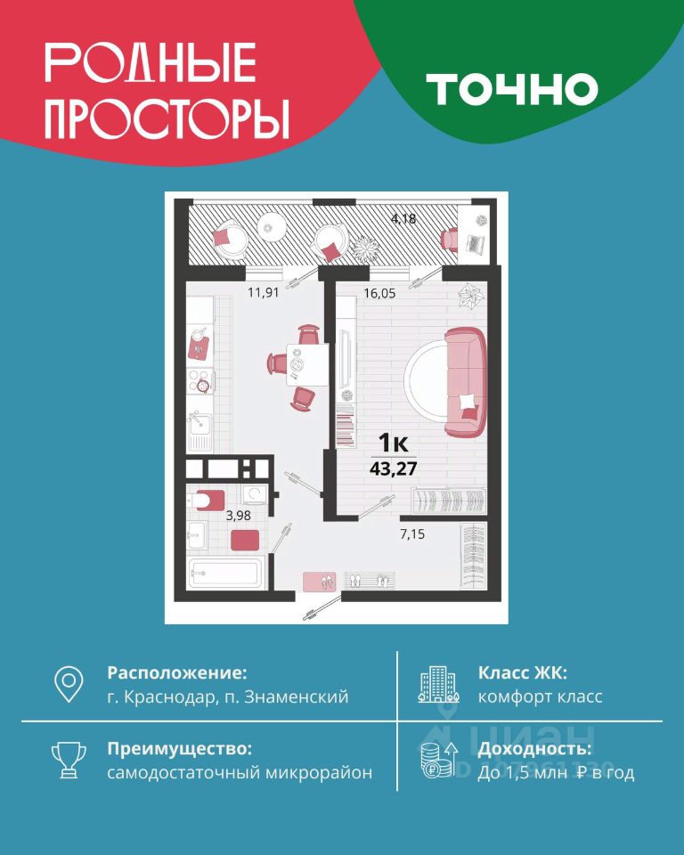 "Родные просторы"- самодостаточный микрорайон, который реализован по принципу комплексного развития территории, где есть вся инфраструктура для комфортной жизни. На территории 41 га 29 домов от 9 до 24 этажей, уютные дворы со спортивными и игровыми площадками, социальные и коммерческие объекты, зеленые массивы и фонтаны. Главная точка притяжения "Родных просторов" - парк семейного отдыха площадью 9 га, 4,5 км прогулочных аллей, амфитеатр для мероприятий, кинофестивальная площадка. Особая гордость микрорайона современная школа на 1550 мест и 3 детских сада "Ладушки", "Веснушки" и "Топотушки" на 880 малышей. В центре микрорайона строятся фитнес-клуб BALANCE с акватермальным комплексом и собственная поликлиника, площадью более 5000 кв.м. Уже открыт православный храм Святых Первоверховных апостолов Петра и Павла.
