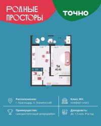 "Родные просторы"- самодостаточный микрорайон, который реализован по принципу комплексного развития территории, где есть вся инфраструктура для комфортной жизни. На территории 41 га 29 домов от 9 до 24 этажей, уютные дворы со спортивными и игровыми площадками, социальные и коммерческие объекты, зеленые массивы и фонтаны. Главная точка притяжения "Родных просторов" - парк семейного отдыха площадью 9 га, 4,5 км прогулочных аллей, амфитеатр для мероприятий, кинофестивальная площадка. Особая гордость микрорайона современная школа на 1550 мест и 3 детских сада "Ладушки", "Веснушки" и "Топотушки" на 880 малышей. В центре микрорайона строятся фитнес-клуб BALANCE с акватермальным комплексом и собственная поликлиника, площадью более 5000 кв.м. Уже открыт православный храм Святых Первоверховных апостолов Петра и Павла.