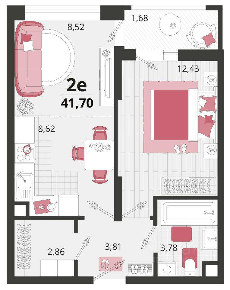 Общая площадь41,7 м²