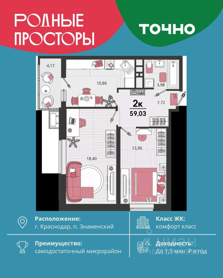 "Родные просторы"- самодостаточный микрорайон, который реализован по принципу комплексного развития территории, где есть вся инфраструктура для комфортной жизни. На территории 41 га 29 домов от 9 до 24 этажей, уютные дворы со спортивными и игровыми площадками, социальные и коммерческие объекты, зеленые массивы и фонтаны. Главная точка притяжения "Родных просторов" - парк семейного отдыха площадью 9 га, 4,5 км прогулочных аллей, амфитеатр для мероприятий, кинофестивальная площадка. Особая гордость микрорайона современная школа на 1550 мест и 3 детских сада "Ладушки", "Веснушки" и "Топотушки" на 880 малышей. В центре микрорайона строятся фитнес-клуб BALANCE с акватермальным комплексом и собственная поликлиника, площадью более 5000 кв.м. Уже открыт православный храм Святых Первоверховных апостолов Петра и Павла.