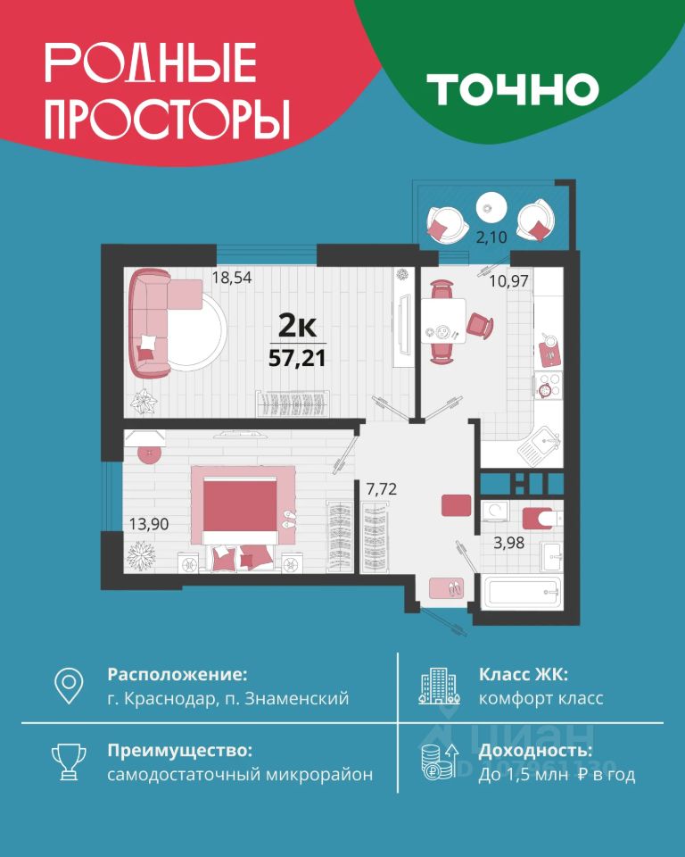 "Родные Просторы" — самодостаточный микрорайон, который реализуется по принципам комплексного развития территории. На территории 41 га возводится один из самых масштабных проектов в Краснодарском крае, который включает: 29 разновысотных домов_x000D_