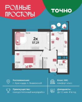 от 9 до 24 этажей, уютные дворы со спортивными и игровыми площадками, социальные и коммерческие объекты, зеленые массивы и фонтаны. Главная точка притяжения "Родных Просторов" — парк семейного отдыха площадью 9 га, 4,5 км прогулочных аллей, амфитеатр для мероприятий, кинофестивальная площадка. Особая гордость микрорайона — современная школа на 1550 мест и 3 детских сада "Ладушки", "Веснушки" и "Топотушки" на 880 малышей. В центре микрорайона строятся фитнес-клуб "Баланс" с акватермальным комплексом и собственная поликлиника площадью более 5000 кв.м. Уже открыт православный храм Святых Первоверховных апостолов Петра и Павла. "Родные Просторы""— проект для жизни или инвестиций с доходом до 1,5 млн. руб. в год.*