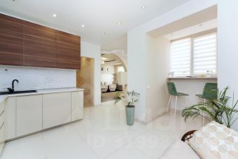 Отделка в квартире выполнена в классических светлых тонах. Много интересных элементов декора. При этом пространство распланировано грамотно, с точки зрения эргономики. Нет бесполезных площадей. В кухне-гостиной и сан. узлах - теплый пол. В комнатах на полу ламинат. Встроенная кухня с бытовой техникой Bosch.