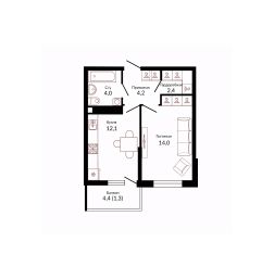 Площадь кухни12,1 м²