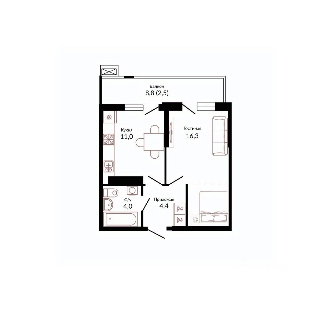 Общая площадь39,4 м²