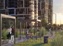 Проект включает в себя 4 дома высотой 22-23 этажа. В темное время суток предусмотрена художественная подсветка фасадов. Выполнена светлая дизайнерская отделка входных групп, для удобства жителей в местах общего пользования предусмотрена навигация. Входные группы расположены на уровне земли, без ступеней и пандусов с двумя входами: со двора и улицы. В каждой секции предусмотрены помещения для хранения велосипедов и колясок с обустроенным местом для мойки колес и лап домашних животных.