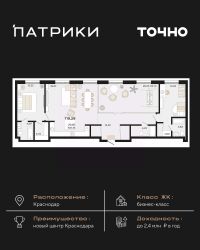 Флагманский проект группы компаний Точно - жилой комплекс бизнес-класса Патрики, это 10 домов разной этажности расположившихся на 28,5 гектарах. Жилой комплекс с концепцией город в город - прогулочные аллеи, парковая территория, 3 детских сада, 2 школы - одна из которых частная, Гранд аллея с ресторанами, фонтанами и модными бутиками, уникальные мафы и ландшафтный дизайн, создают особую атмосферу - место в котором хочется находиться. В Патриках предусмотрен и креативный кластер Цех, который включает в себя пространство для коворкинга, фудкорт, бутики, детский комплекс, лектории, фитнес-клуб Баланс с волной для сёрфа. Но и это еще не все ГК Точно уважает историю, поэтому мы сохранили 2 башни - наследство от завода "Сельмаш" исторический арт-объект назвали Мастер и Маргарита.