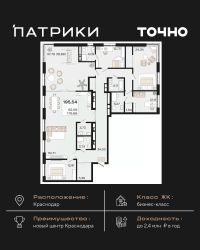 Флагманский проект группы компаний Точно - жилой комплекс бизнес-класса Патрики, это 10 домов разной этажности расположившихся на 28,5 гектарах. Жилой комплекс с концепцией город в город - прогулочные аллеи, парковая территория, 3 детских сада, 2 школы - одна из которых частная, Гранд аллея с ресторанами, фонтанами и модными бутиками, уникальные мафы и ландшафтный дизайн, создают особую атмосферу - место в котором хочется находиться. В Патриках предусмотрен и креативный кластер Цех, который включает в себя пространство для коворкинга, фудкорт, бутики, детский комплекс, лектории, фитнес-клуб Баланс с волной для сёрфа. Но и это еще не все ГК Точно уважает историю, поэтому мы сохранили 2 башни - наследство от завода "Сельмаш" исторический арт-объект назвали Мастер и Маргарита.