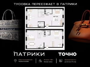 Флагманский проект группы компаний Точно - жилой комплекс бизнес-класса Патрики, это 10 домов разной этажности расположившихся на 28,5 гектарах. Жилой комплекс с концепцией город в город - прогулочные аллеи, парковая территория, 3 детских сада, 2 школы - одна из которых частная, Гранд аллея с ресторанами, фонтанами и модными бутиками, уникальные мафы и ландшафтный дизайн, создают особую атмосферу - место в котором хочется находиться. В Патриках предусмотрен и креативный кластер Цех, который включает в себя пространство для коворкинга, фудкорт, бутики, детский комплекс, лектории, фитнес-клуб Баланс с волной для сёрфа. Но и это еще не все ГК Точно уважает историю, поэтому мы сохранили 2 башни - наследство от завода "Сельмаш" исторический арт-объект назвали Мастер и Маргарита.