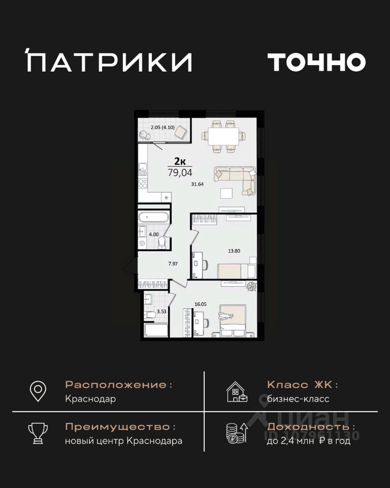 Флагманский проект группы компаний Точно - жилой комплекс бизнес-класса Патрики, это 10 домов разной этажности расположившихся на 28,5 гектарах. Жилой комплекс с концепцией город в город - прогулочные аллеи, парковая территория, 3 детских сада, 2 школы - одна из которых частная, Гранд аллея с ресторанами, фонтанами и модными бутиками, уникальные мафы и ландшафтный дизайн, создают особую атмосферу - место в котором хочется находиться. В Патриках предусмотрен и креативный кластер Цех, который включает в себя пространство для коворкинга, фудкорт, бутики, детский комплекс, лектории, фитнес-клуб Баланс с волной для сёрфа. Но и это еще не все ГК Точно уважает историю, поэтому мы сохранили 2 башни - наследство от завода "Сельмаш" исторический арт-объект назвали Мастер и Маргарита.