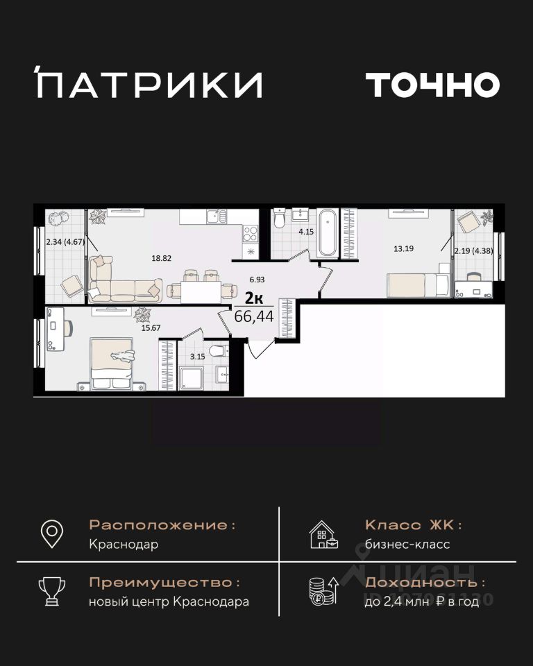 Флагманский проект группы компаний Точно - жилой комплекс бизнес-класса Патрики, это 10 домов разной этажности расположившихся на 28,5 гектарах. Жилой комплекс с концепцией город в город - прогулочные аллеи, парковая территория, 3 детских сада, 2 школы - одна из которых частная, Гранд аллея с ресторанами, фонтанами и модными бутиками, уникальные мафы и ландшафтный дизайн, создают особую атмосферу - место в котором хочется находиться. В Патриках предусмотрен и креативный кластер Цех, который включает в себя пространство для коворкинга, фудкорт, бутики, детский комплекс, лектории, фитнес-клуб Баланс с волной для сёрфа. Но и это еще не все ГК Точно уважает историю, поэтому мы сохранили 2 башни - наследство от завода "Сельмаш" исторический арт-объект назвали Мастер и Маргарита.