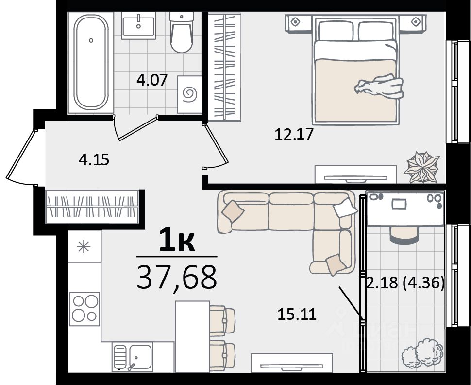 Общая площадь37,68 м²