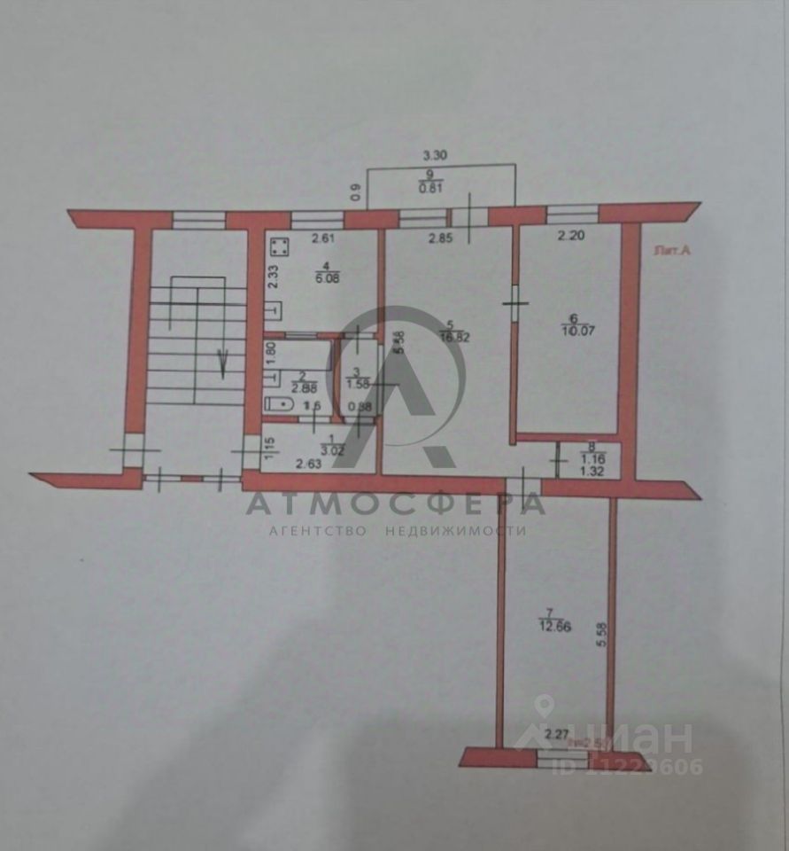 Три комнаты, санузел совмещённый.