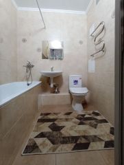 Ремонт выполнен из дорогих материалов: во всей квартире уложен ламинат, санузел отделан плиткой. Также имеется подсобное помещение (кладовка) и два застеклённых балкона.