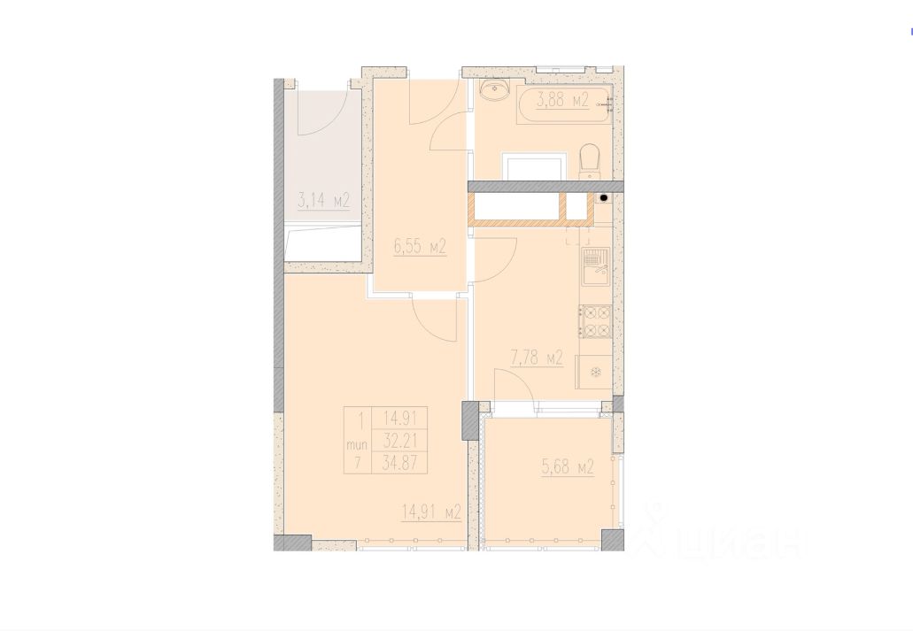 распланирована в выделенную спальню, кухню-гостиную, сан. узел, просторную лоджию.