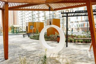 На территории комплекса есть: видеонаблюдение; бесплатный Wi-Fi; детские площадки для разных возрастов с безопасным покрытием; зоны отдыха для взрослых; воркаут-зоны; фитнес клуб многоуровневый паркинг; подземный паркинг; зарядки для электромобилей; зона барбекю; атриумный дворик; торговые галереи на первых этажах.