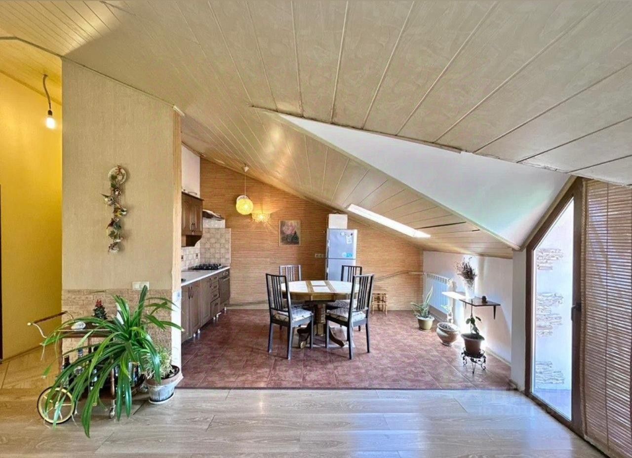 Квартира на 4 этаже . Этаж мансардный , высокие потолки , европейский стиль .