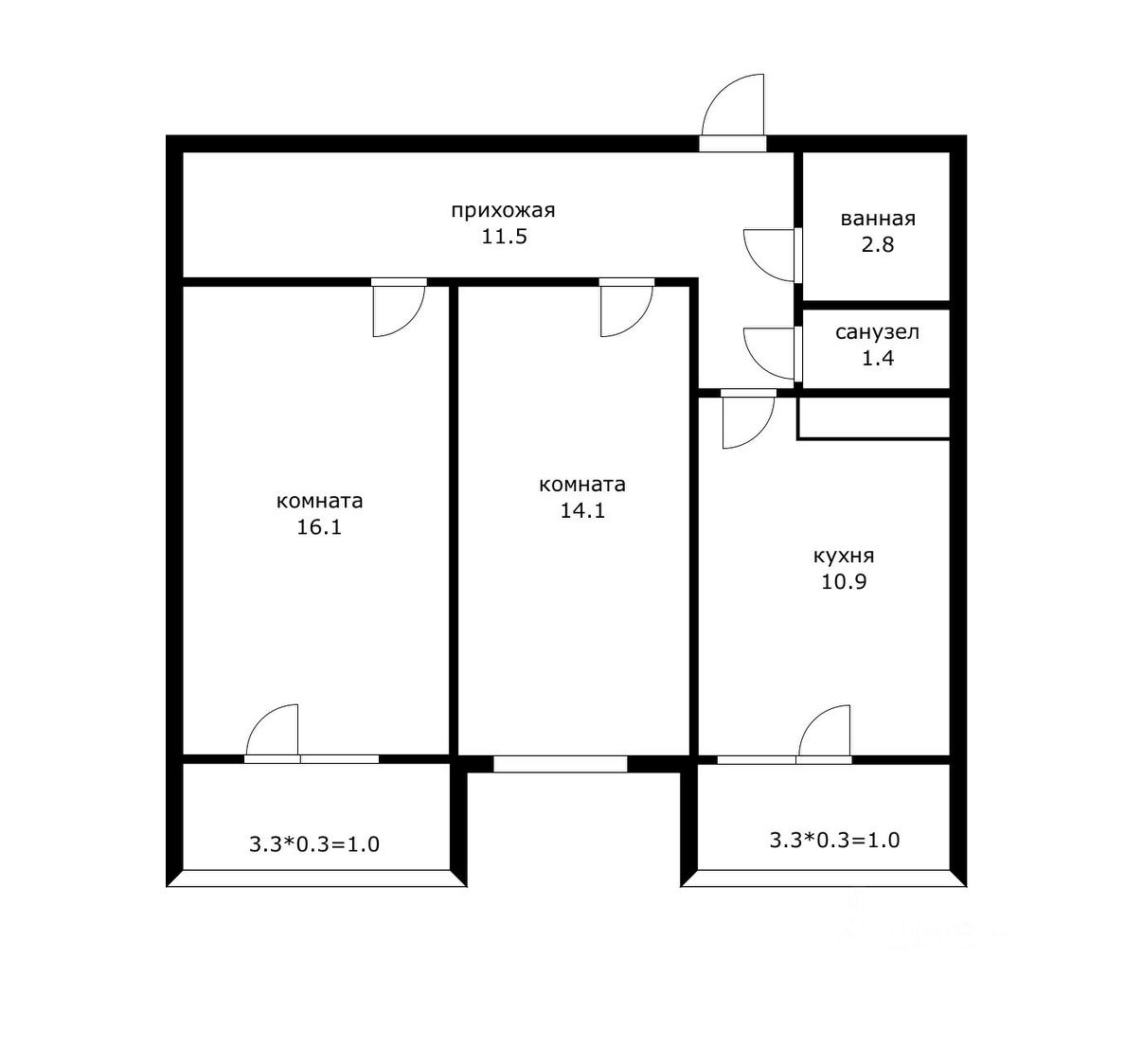 56.4 м² свободы  две комнаты, лоджия и балкон