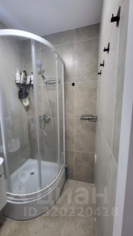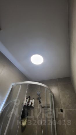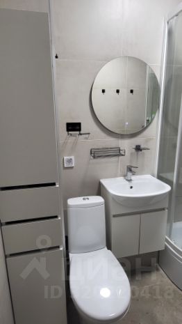 Санузел совмещенный, выполнен в светлых тонах, оснащён душевой кабиной и современной сантехникой.