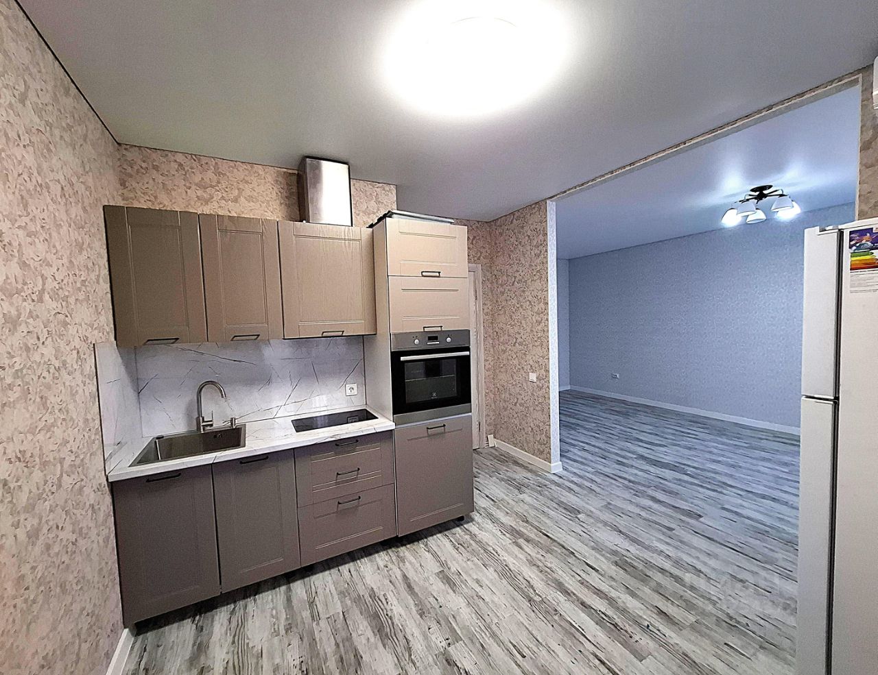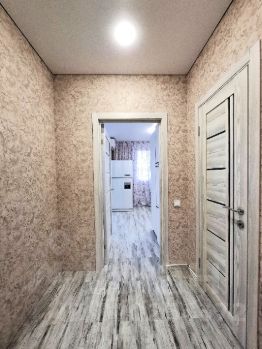- По всей квартире натяжные потолки, на полу уложен кварц-винил.
