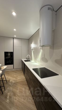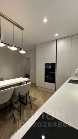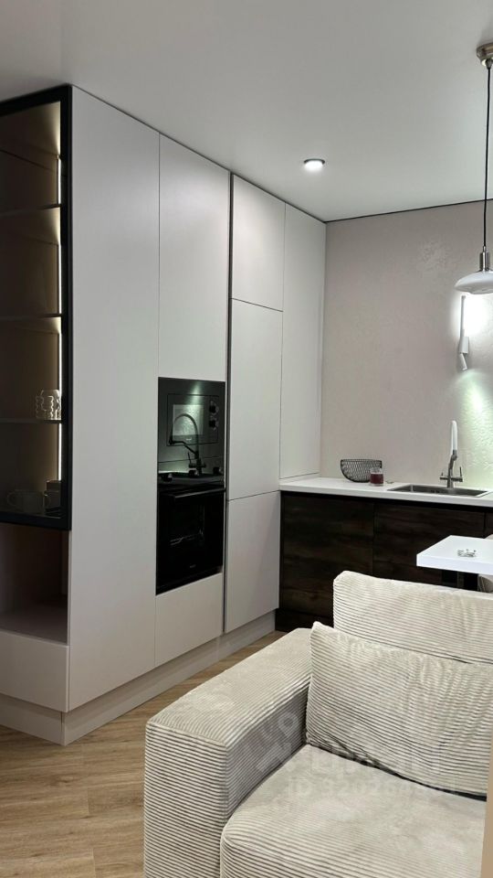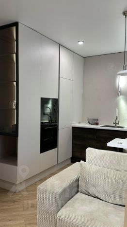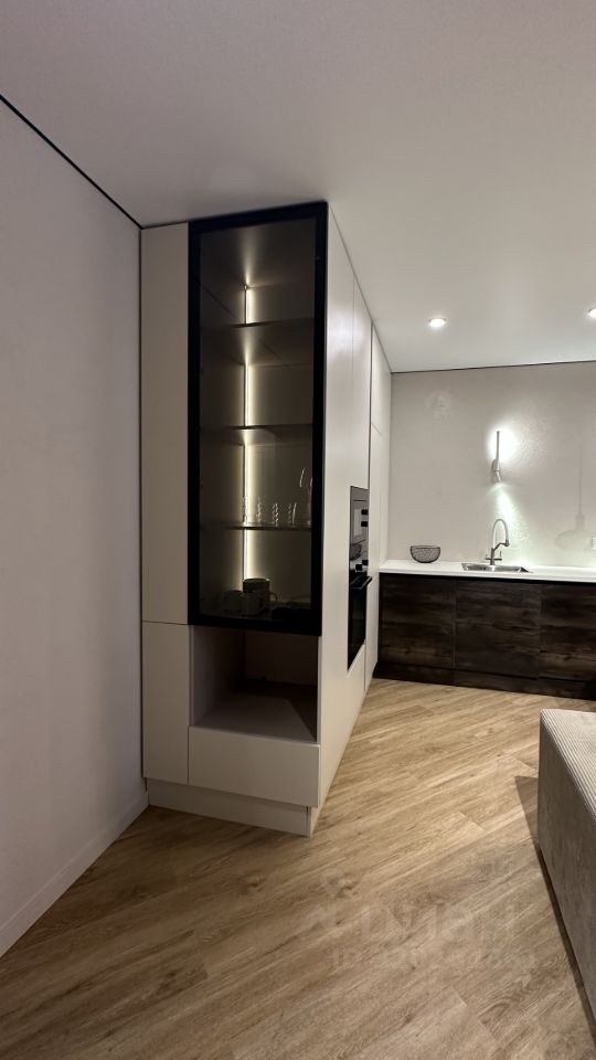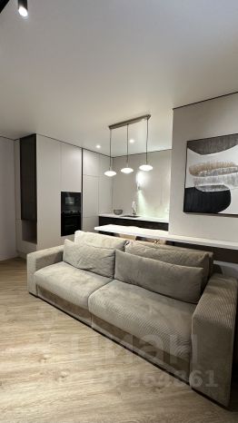 В квартире останется вся техника: кондиционер, водонагреватель, встроенные холодильник, посудомоечная машина, плита индукция, вытяжка цилиндрическая, микроволновая печь, духовой шкаф. Кухонный гарнитур очень вместительный, места для хранения очень много. В гостиной зоне модульный диван, которой раскладывается как угловой на обе стороны, по желанию. Барная стойка и полу барные кресла расположены напротив тв-зоны.