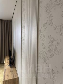 В качестве декоративного элемента на стенах в тон штукатурки сделаны вертикальные панели. Очень качественные натяжные потолки с теневым профилем в зонах панелей, встроенные карнизы и встроенные вытяжки в потолке.