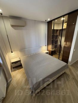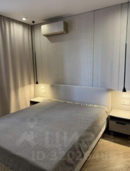 В спальне двухспальная кровать 160х200 с ортопедическим матрасом, гардеробная 120х200 с вместительными шкафами по обе стороны, притемненные дверцы создают стильный эффект в спальне.
