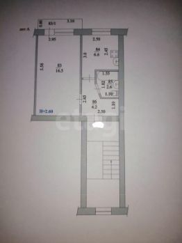 Общая площадь квартиры 29,9 кв.м., жилая - 16,5 кв.м., кухня - 6,6 кв.м.