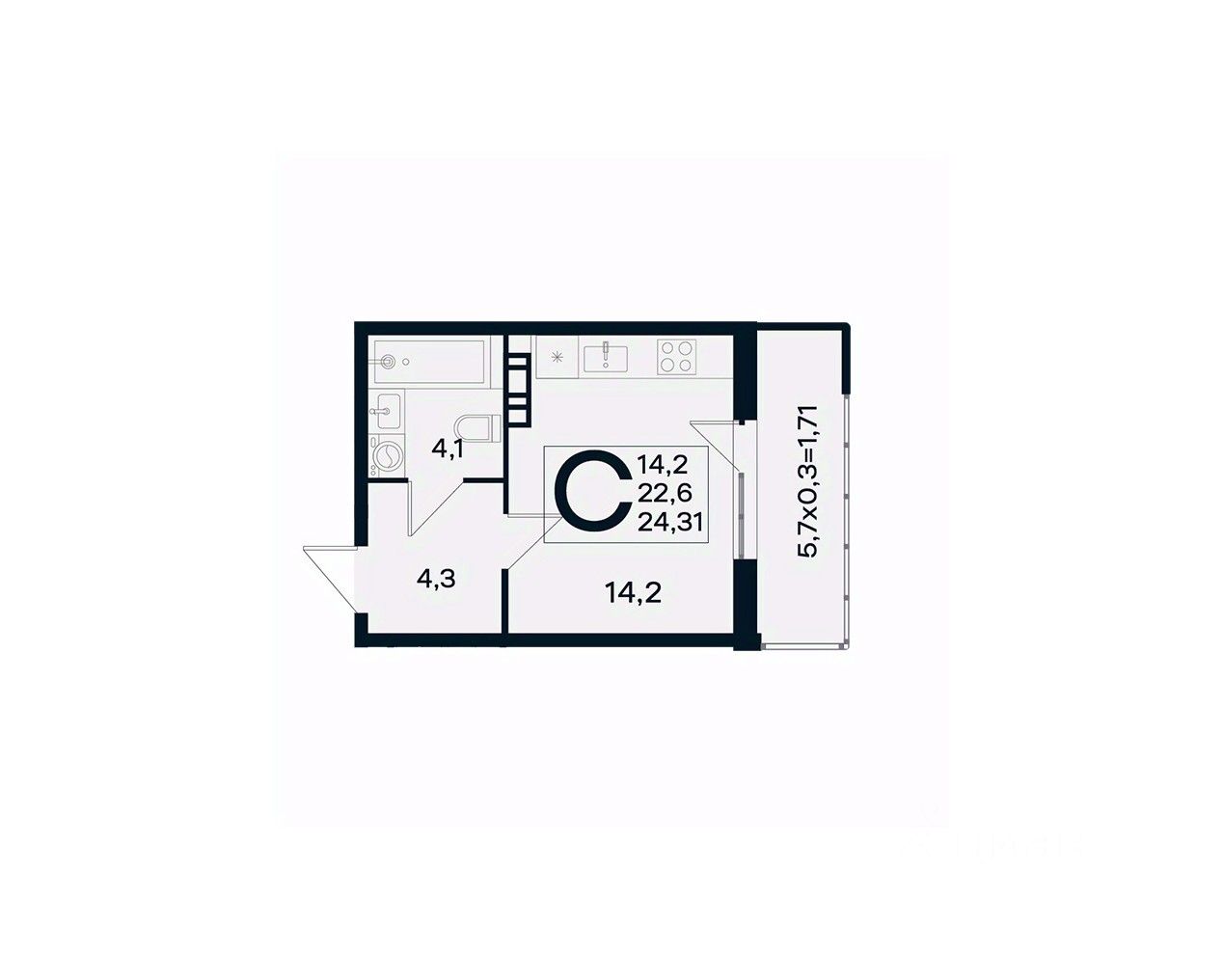 Общая площадь24,31 м²