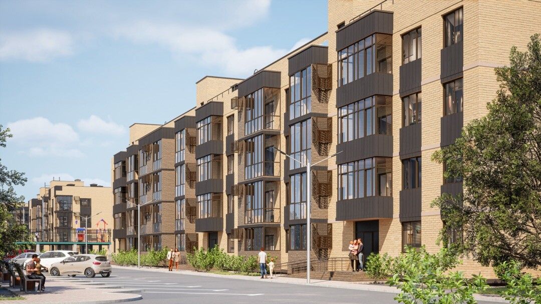 Современный проект, возведенный по технологии кирпично-монолитного строительства с фасадами, облицованным кирпичом.