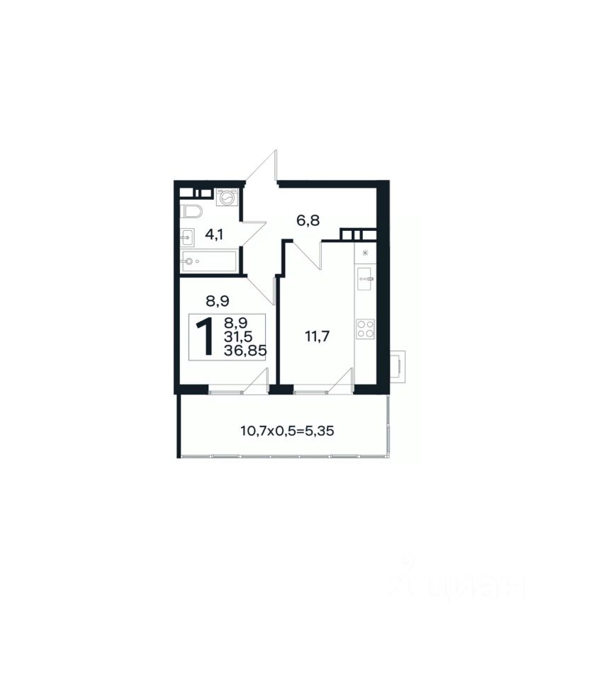 Общая площадь36,85 м²