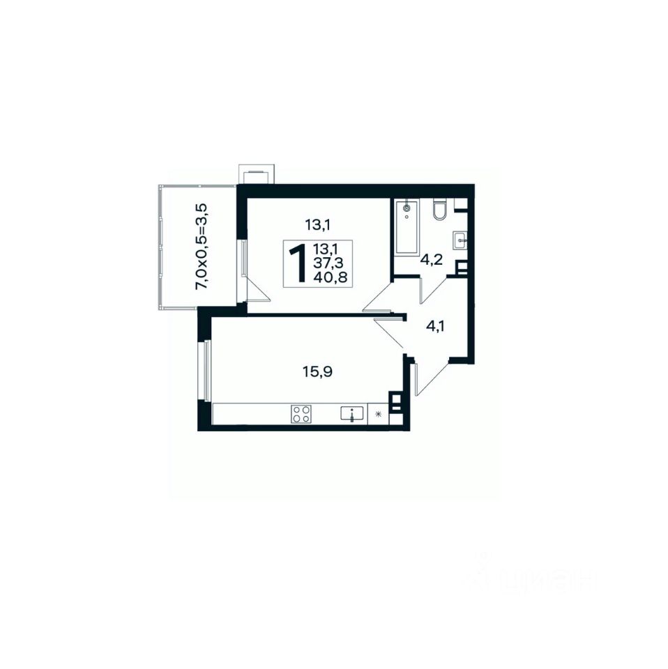 Общая площадь40,8 м²