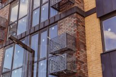 Современный проект, возведенный по технологии кирпично-монолитного строительства с фасадами, облицованным кирпичом.