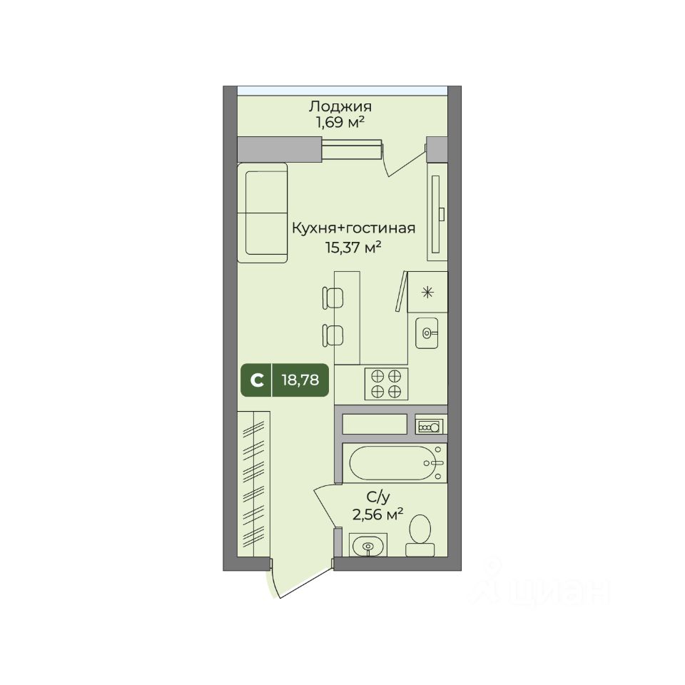 Уникальная студия 59 площадью 18,775кв.м.(Л2 подъезд 1) в ЖК "Цитрус".
