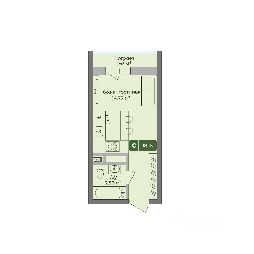 Уникальная студия 113 площадью 18,15кв.м.(Л2 подъезд 2) в ЖК "Цитрус".