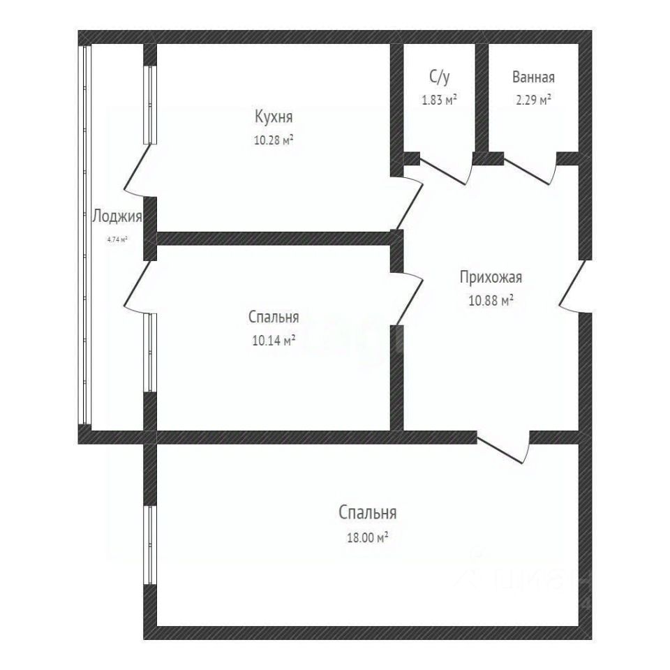Эта двухкомнатная квартира площадью 54,3 кв.м. с просторной лоджией 7 кв.м.  ваш идеальный выбор!