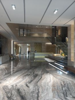 Фасад из травертина. Выполнен по индивидуальному проекту. Синтез архитектурных стилей привнес в Development Plaza европейскую атмосферу.