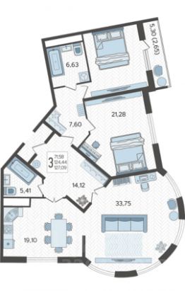 Предлагается к продаже трехкомнатная квартира с уникальной планировкой в жилом комплексе бизнес-класса AVrorA.