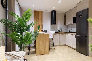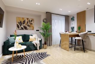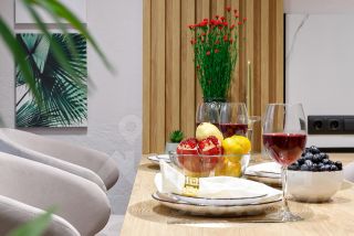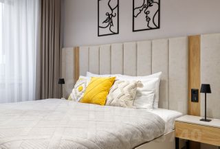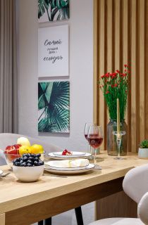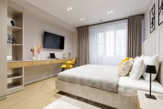 Мебель выполнена под заказ, в том числе кровать, диван, стулья.