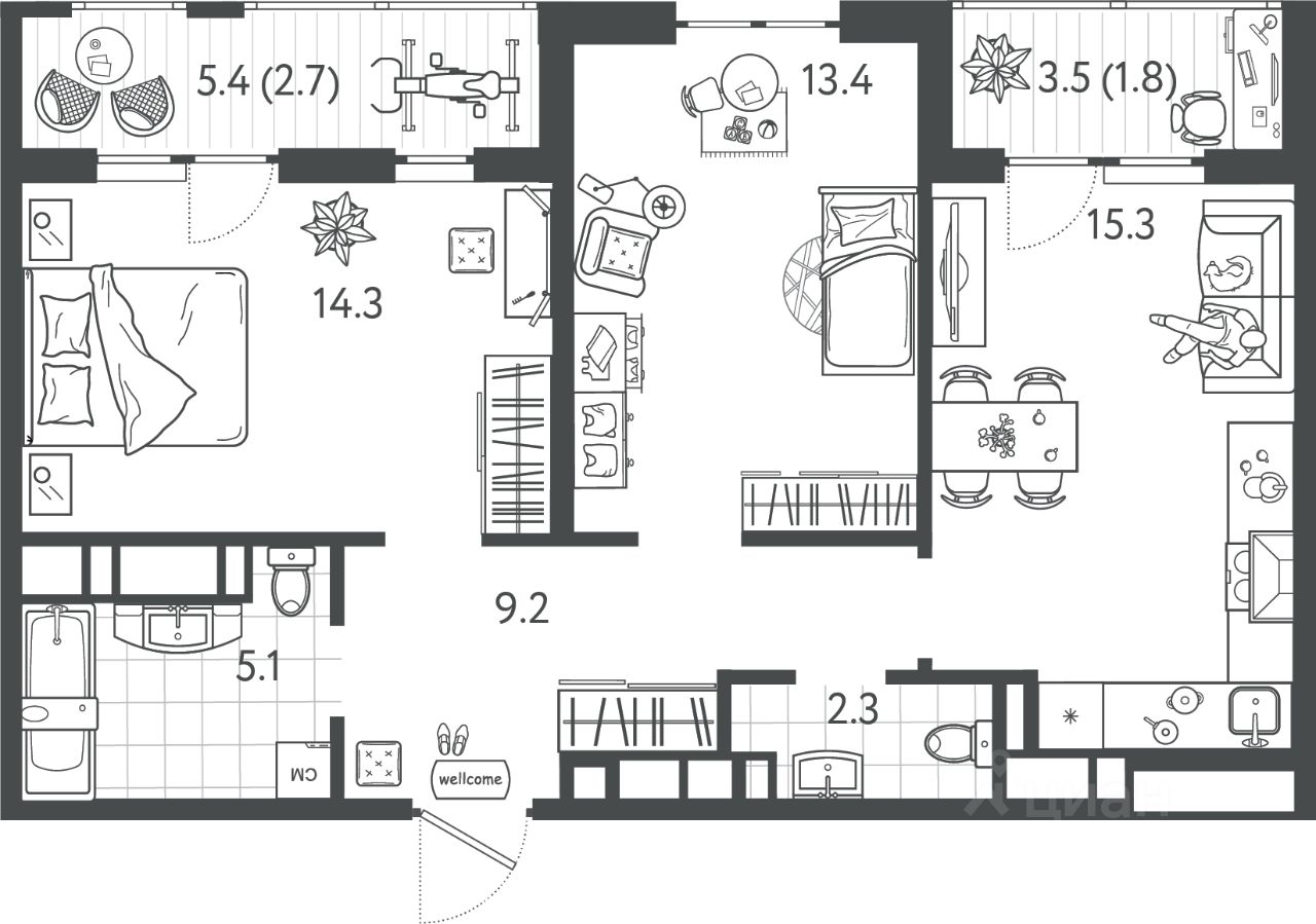 130 планировочных решений квартир с мастер-спальными, гардеробными и огромными лоджиями."Все Свои VIP" — настоящий бастион с тремя уровнями безопасности, доступом по Face ID и системой "Умный дом".
