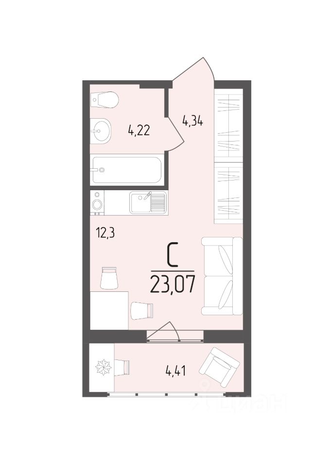 Общая площадь23,07 м²