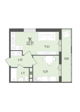 Общая площадь40,37 м²