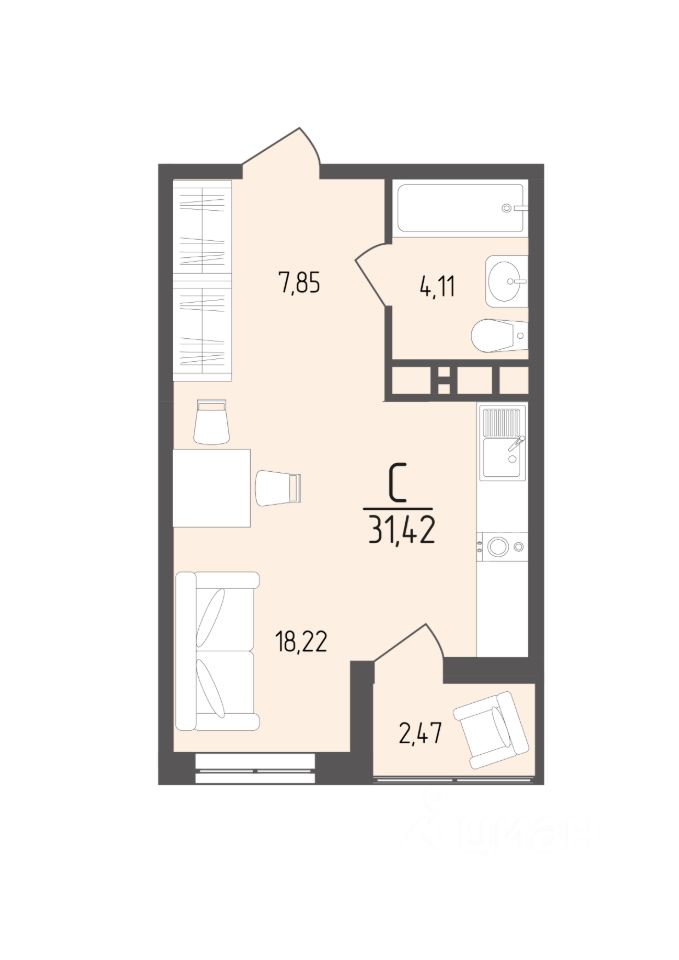 Общая площадь31,42 м²