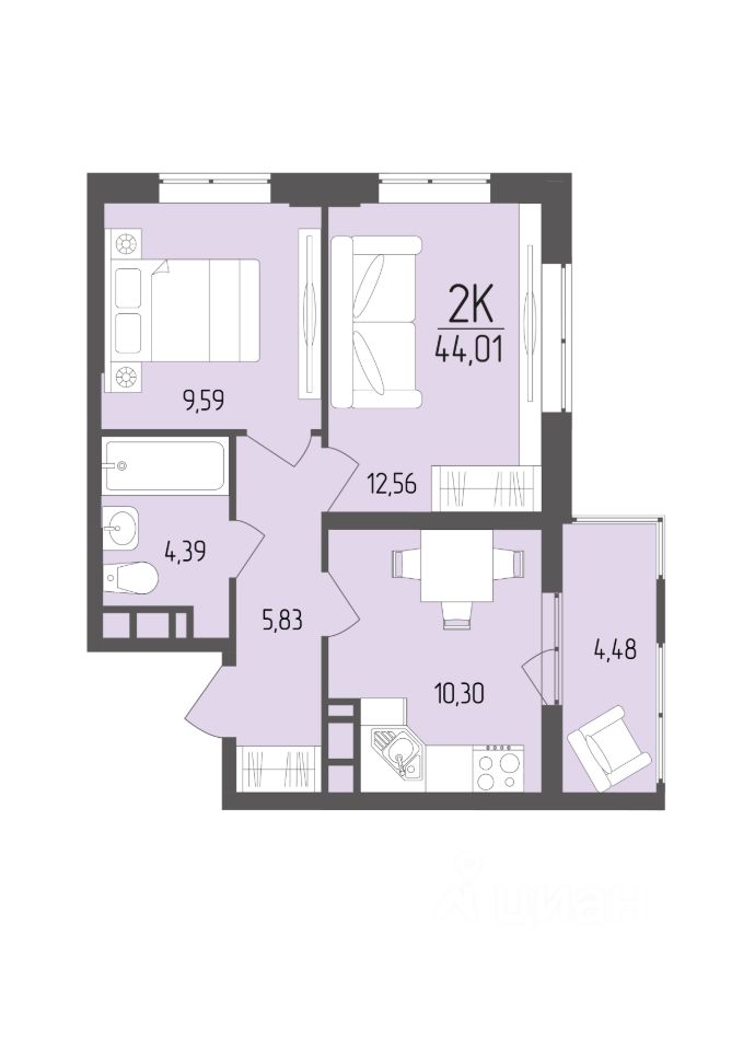 Общая площадь44,01 м²