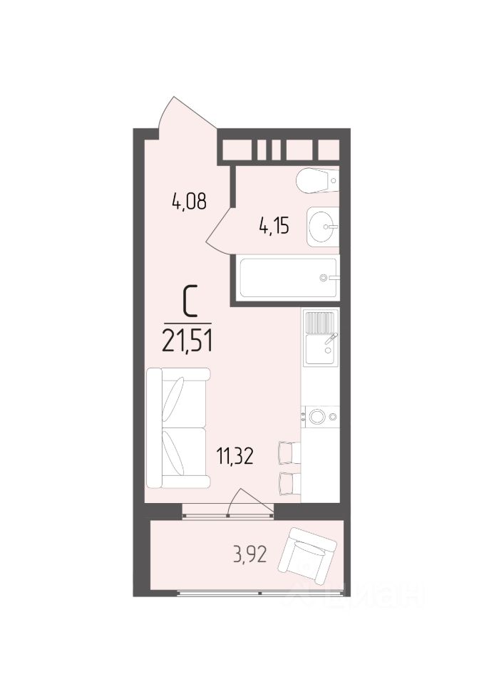 Общая площадь21,51 м²